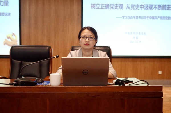 精彩的授课赢得大家阵阵掌声。课后,沈晋华主席表示,刘老师的授课非常精彩,党建带侨建,侨建促党建一直是我们工作的重要抓手,希望大家能够以这次授课为契机,学党史、悟思想、凝侨心、聚侨力,为苏州打造展示社会主义现代化的“最美窗口”做出侨界贡献。