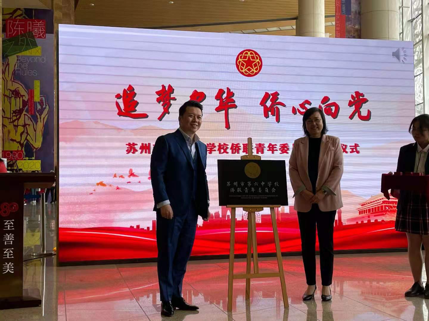快讯:苏州六中侨联青年委员会首枚会徽佩戴在施恒校友胸前