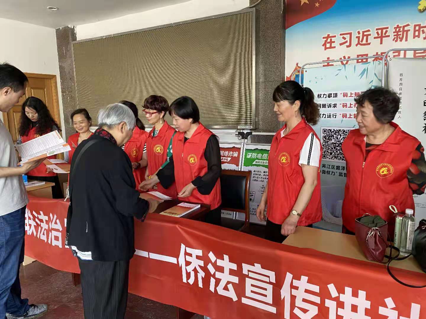 5月份是江苏省侨界第四届“法治宣传月”,为广泛宣传涉侨法律法规,贯彻落实省侨联关于建设法治侨联·服务侨界群众的精神,进一步提高社区居民对涉侨法规和政策的认识,25日下午,盛泽镇侨联来到桥北社区开展“侨法宣传进社区”活动,通过“三个一”切实提高宣传效果。