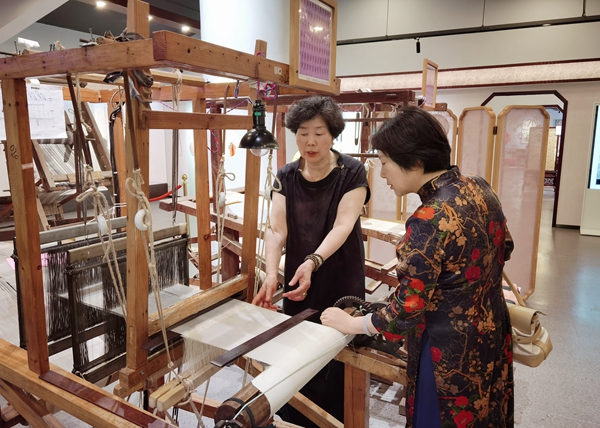 月正式挂牌“苏州市华侨文化交流基地”。在纱罗技艺馆展厅,周建农主席一行详细了解“纱罗织造技艺非物质文化遗产”的传承保护和发展利用情况,听取锦达丝绸李笑苏总经理介绍基地建设方面的最新进展,鼓励基地在更好地保护和开发丝绸文化资源方面不断扩大产学研合作,探索适应时代特点的创新路径。