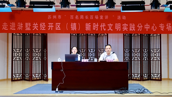 7月20日,苏州市侨界大讲堂第四讲暨苏州市“百名局长百场宣讲”活动在高新区浒墅关经开区新时代文明实践分中心举行。苏州市侨联副主席凌云以《传承红色基因,树立“侨心向党”的坚定信念》为主题进行授课。经开区党政办副主任邵向东主持,社区党员、群众代表等60余人参加活动。