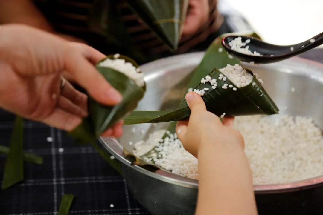 活动开始,由志愿者为侨眷们简单介绍了端午节的由来和典故,由此衍生中华文化的丰富内涵。随后,侨眷们动手包起了粽子,捋粽叶、卷粽斗,铺上厚厚的糯米,添几颗红枣,折角、绑绳,转眼间一颗颗棱角分明的粽子就做好了。活动室内飘出阵阵欢声笑语和甜甜粽香。