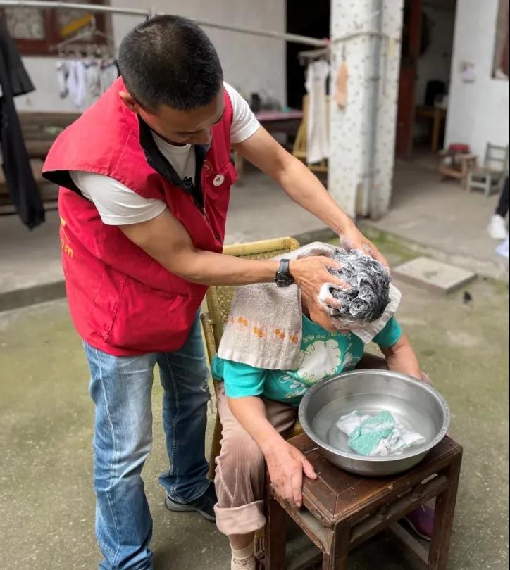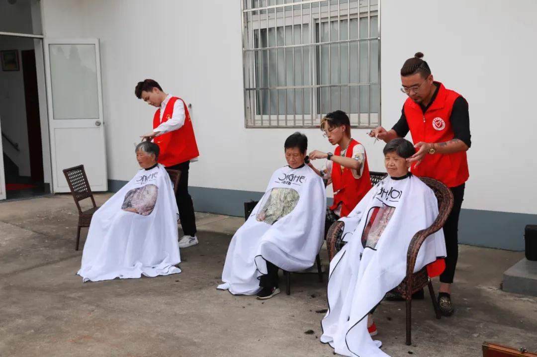 对身体不便,不能来参加活动的侨眷,志愿者们上门服务,为他们理一个精神头,拍一张幸福照。