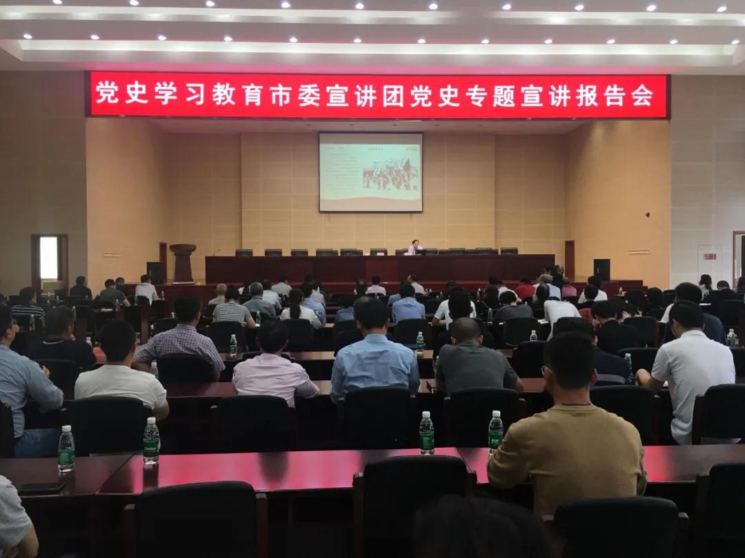 5月14日,党史学习教育市委宣讲团党史专题宣讲报告会走进梅李,20多位侨界人士参加报告会,聆听李强同志传奇的革命经历。