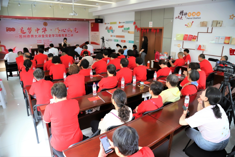 “追梦中华·侨心向党”—苏州侨界大讲堂党史学习教育第二讲,激励党员群众牢记初心使命,坚定理想信念,把党史学习作为增强“四个意识”,坚定“四个自信”,做到“两个维护”的具体实践,与为群众办实事解难题结合起来,与推动社区基层全面从严治党结合起来,与推进社区“红豆侨屋”高质量发展结合起来,推动党史学习教育往深里走,往实里行。