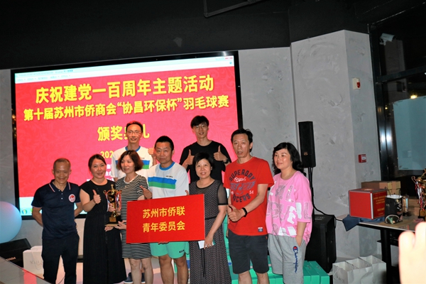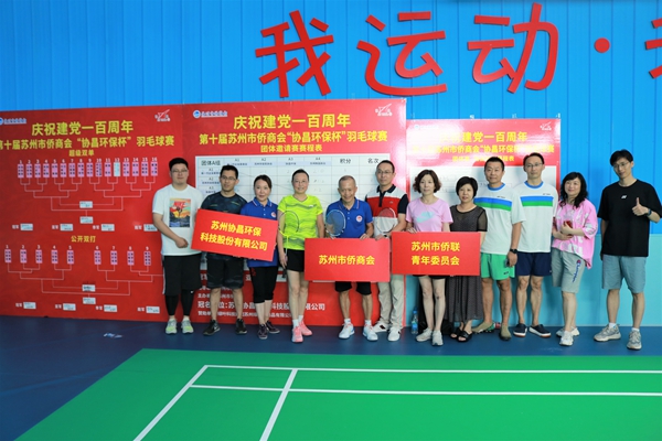 为庆祝中国共产党成立100周年,进一步增强苏州市侨商会会员凝聚力,促进交流和互动,7月4日,苏州市侨商会举办第十届“协昌环保杯”羽毛球比赛。来自侨商会会员单位、顾问单位、友好商会的19支队伍120余名羽毛球爱好者联袂呈现了多场精彩比赛。