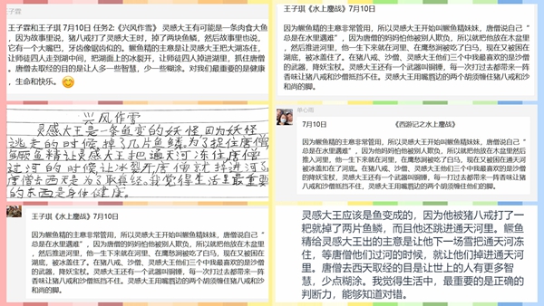 讲述自己对先锋人物、《西游记》、成语寓言等