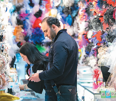 不久前,全球最大的小商品集散中心浙江义乌拥有了自己的全球支付渠道——义支付。图为近日,外国客商在义乌国际商贸城采购饰品。 肖飞摄(人民视觉胡)